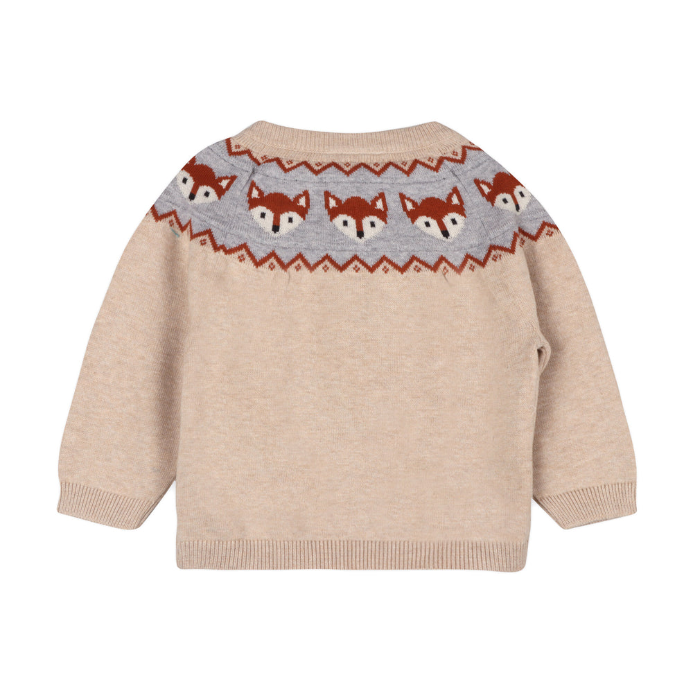 Organic Cotton Fox Jacquard Fair Isle Sweater Knit Baby Pullover