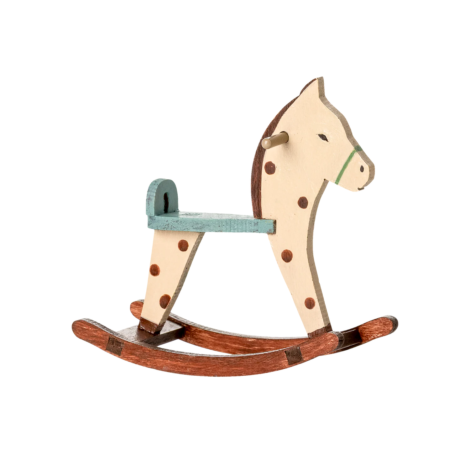This wooden rocking horse is a must have for all playful mice. Its metal handles make it easy for mice with magnets in hands to hold on and the small hole for the tail ensures a nice ride. Fits size little- and bigbrother/sister mice.