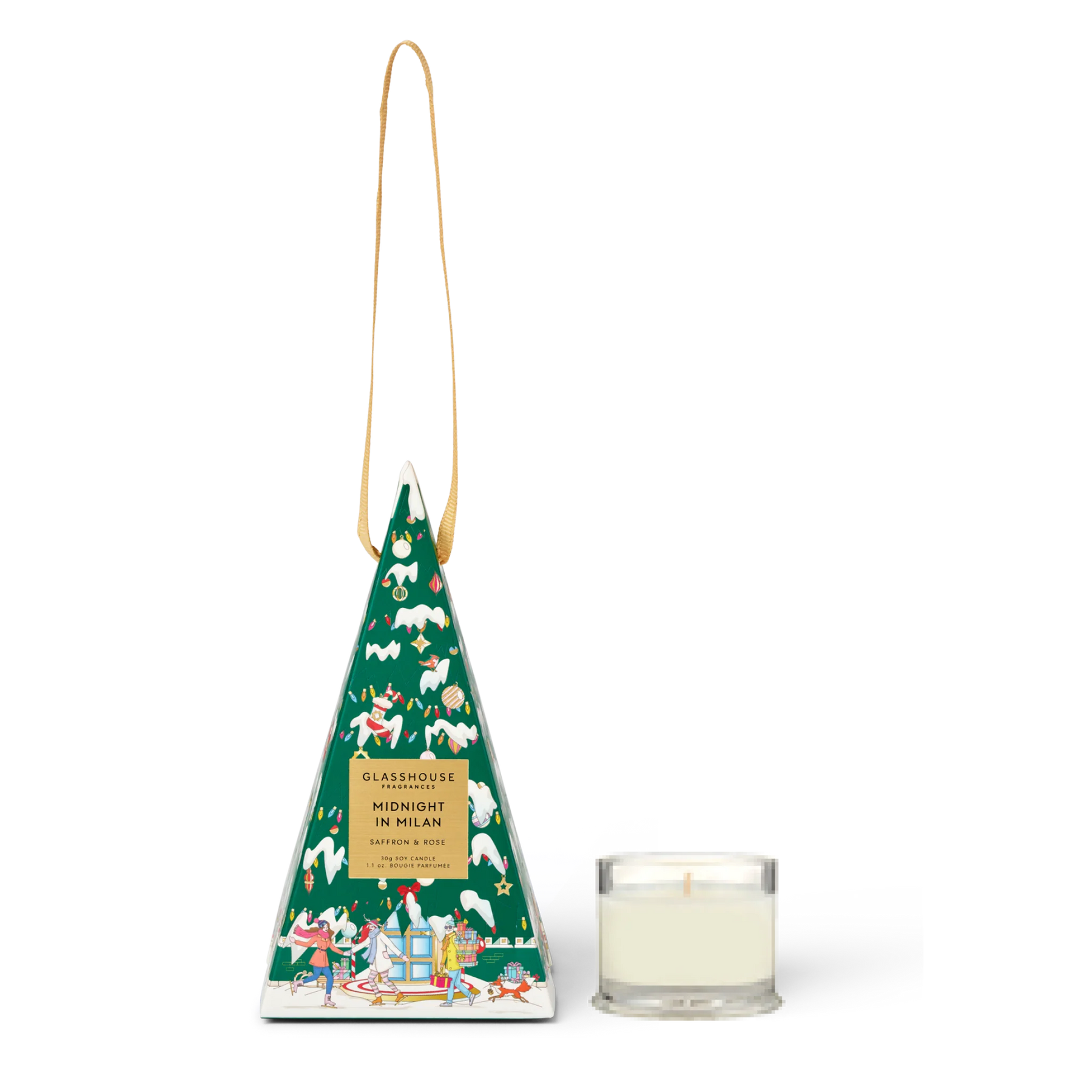 A delightfully festive miniature Candle bauble featuring a crowd-pleasing Midnight In Milan Scent.