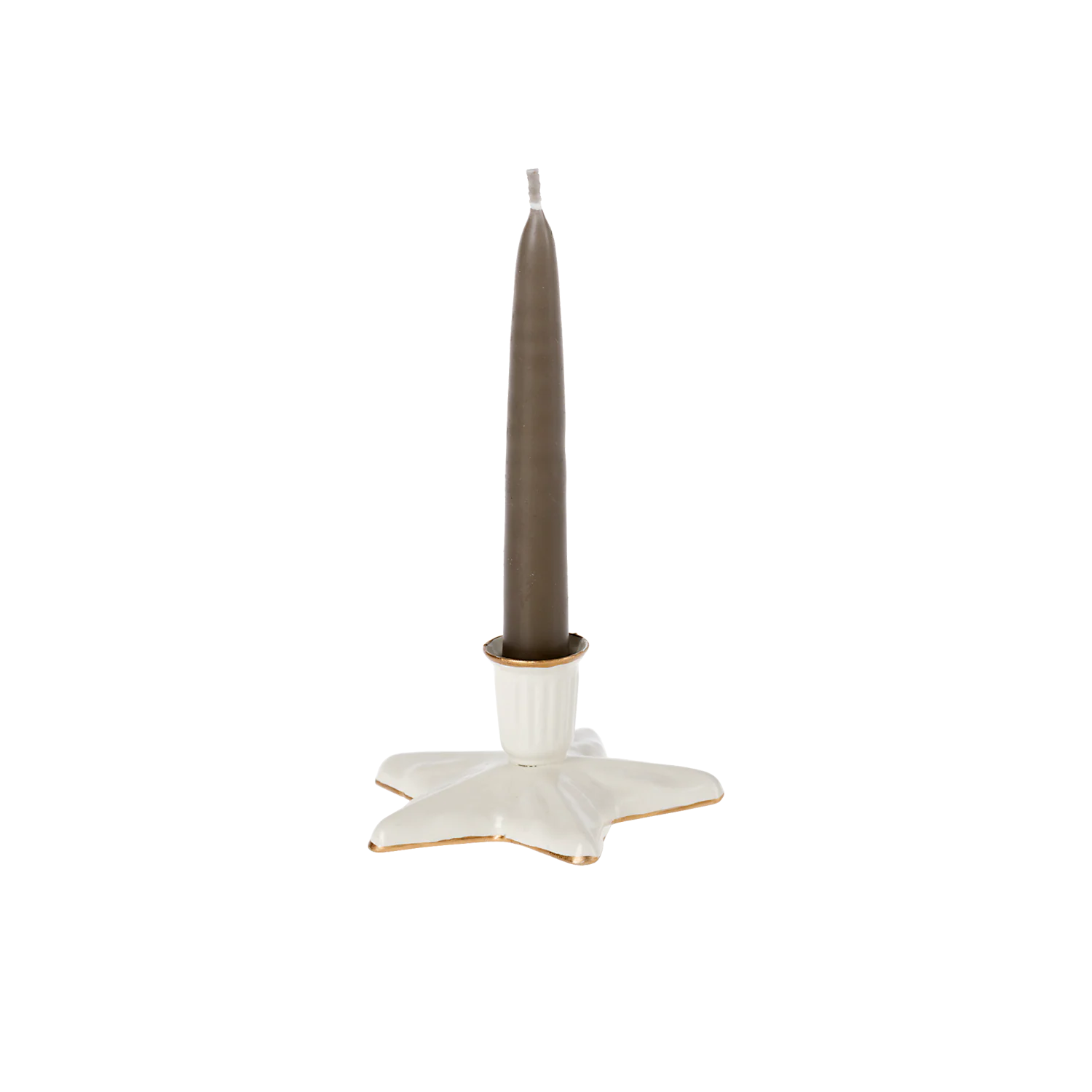 This taper holder is hand-painted with fine golden details. Fits small candles.
