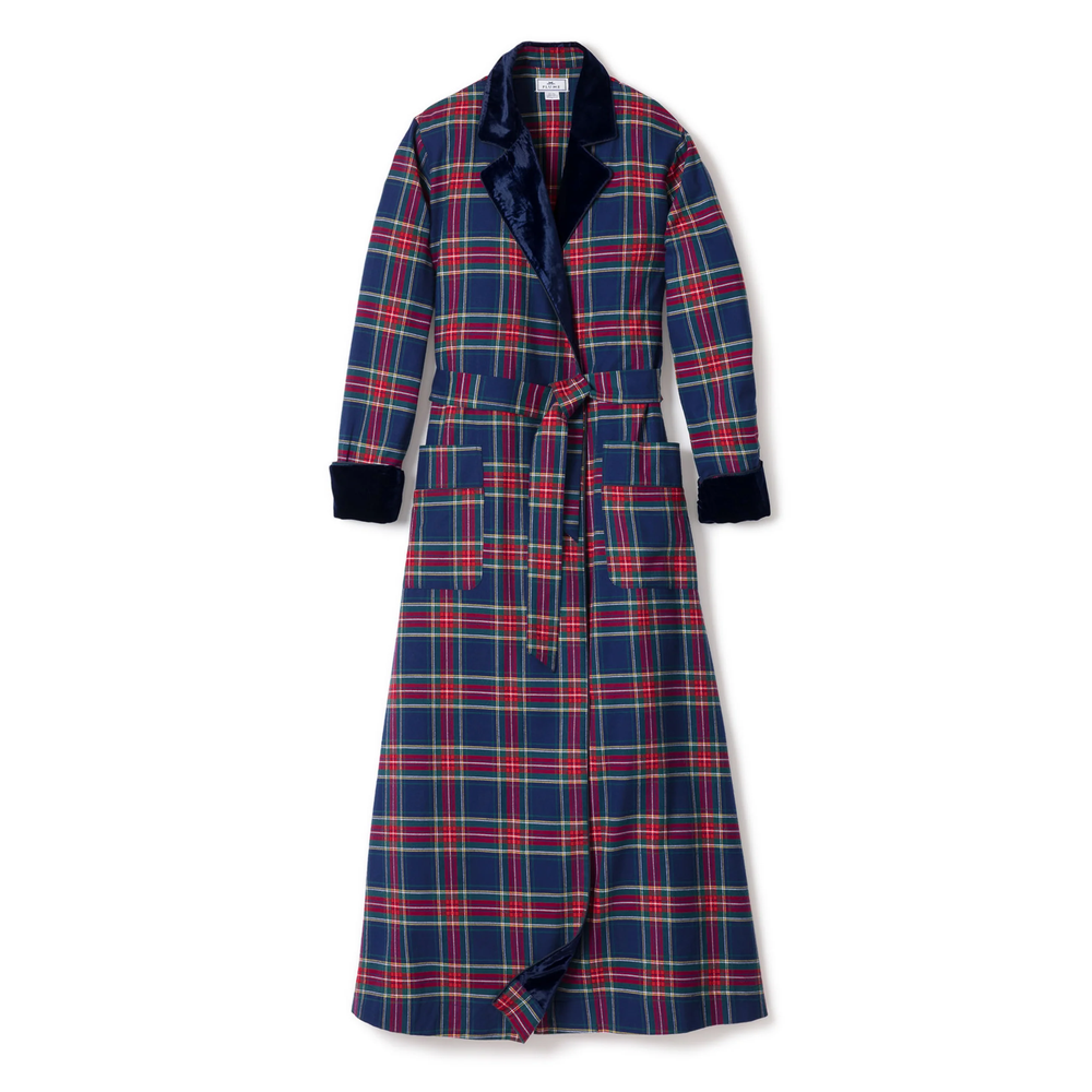 Women's Long Robe with Velvet Trim in Windsor Tartan