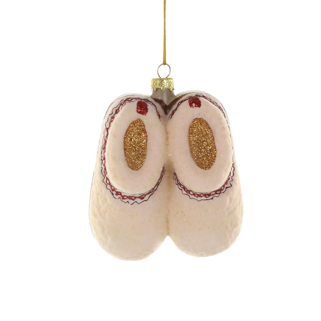 Clear Glass Ball With Gold Beaded Lace Ornament