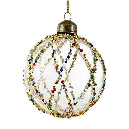 Clear Glass Ball With Multi Colored Rhinestones Ornament
