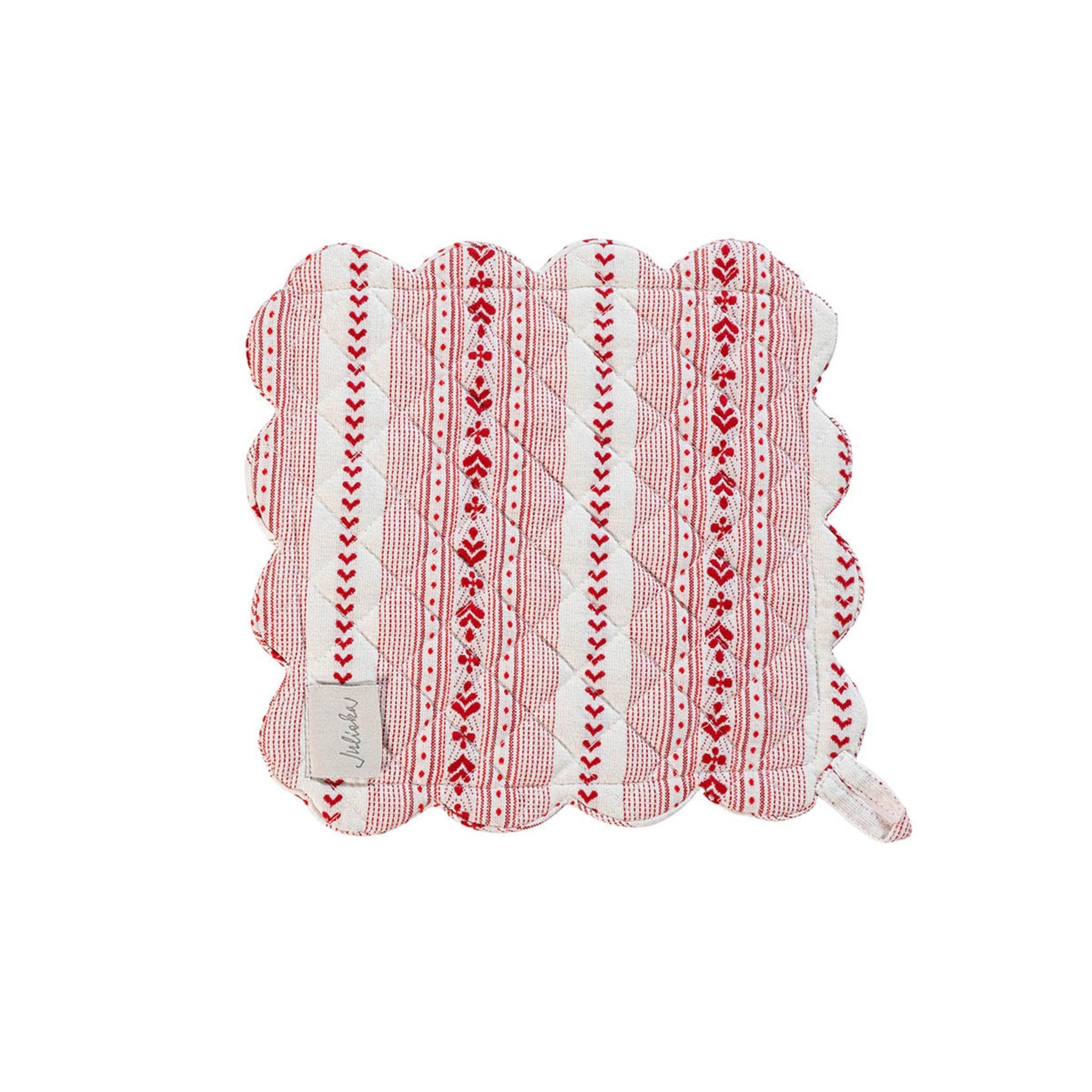 Juliska Villa Stripe Oven Mitt and Pot Holder Set of 2 - Ruby