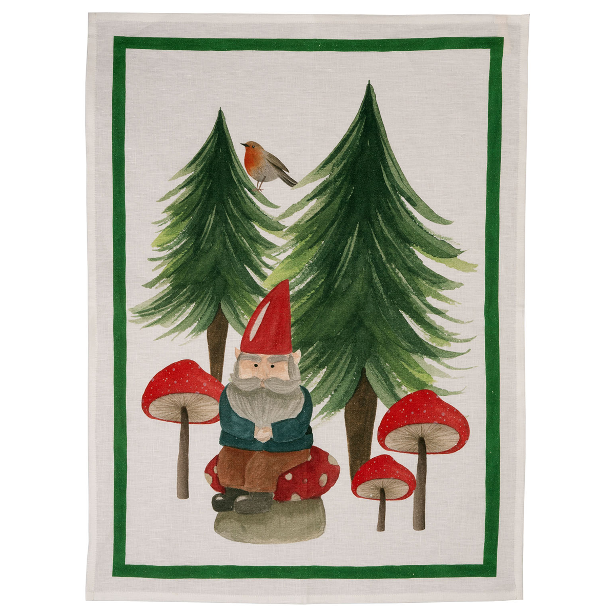 Christmas is a fairy tale to be experienced firsthand, a day in which children listen to adults' stories and adults return, for a day, to being children. The JOLLY ELF tea towel is printed on elegant linen fabric, it shows a fairy tale whose protagonists are mysterious creatures of the woods. Funny and mischievous gnomes create a magical atmosphere of Christmas day in which children, parents, grandparents, relatives and guests are all fantastic characters.