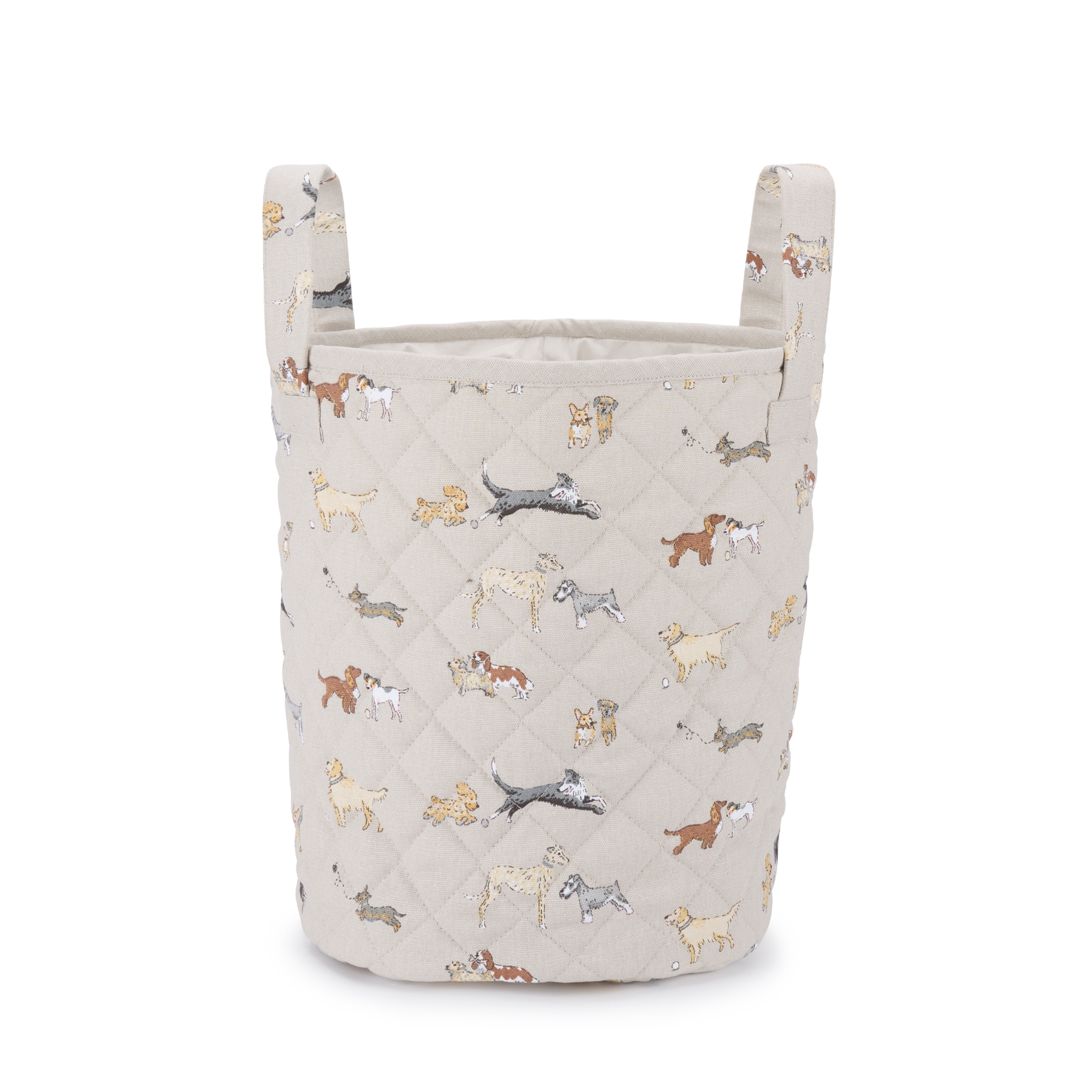 This playful storage basket makes tidying up toys so much easier. Whether your child loves dogs, or you need a special place for your dog's toys, it makes a great addition to any home. The quilted texture and softness add a luxury feel, while illustrations of adorable doggies will make anyone smile. Spot border collies, cockapoos, corgis, border terriers, spaniels, king Charles spaniels, schnauzers, golden retrievers, lurchers, wire-haired dachshunds, jack russells and Norfolk terriers.