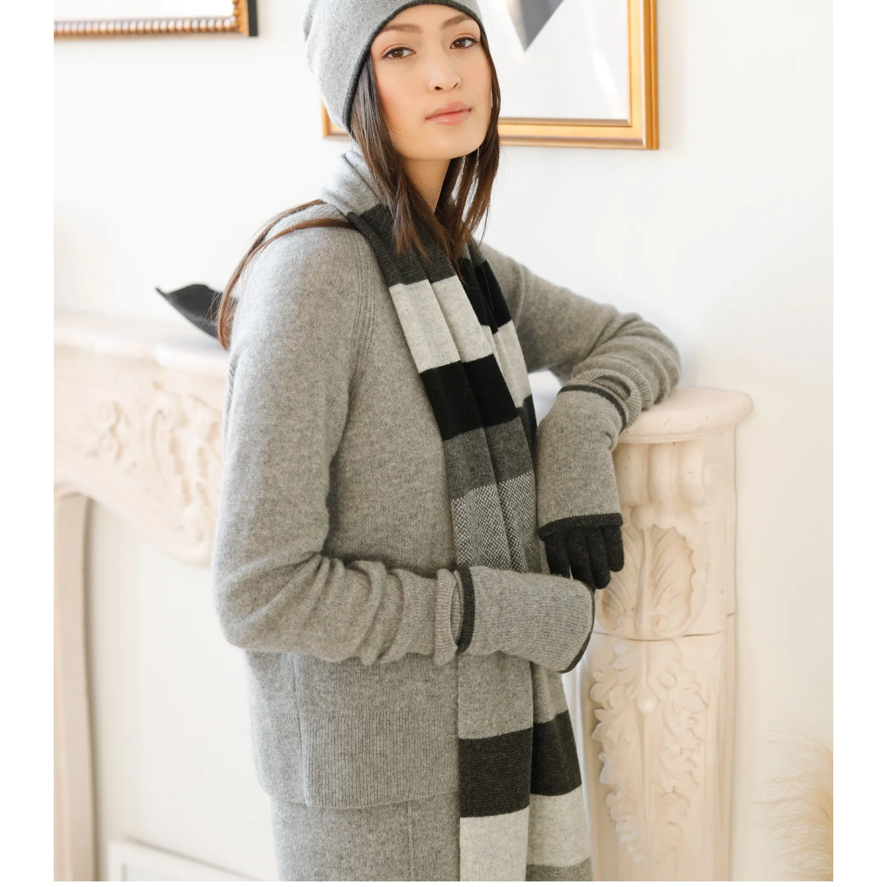 This versatile 3-in-1 convertible gloves will add luxury to your cold weather attire. Keep warm while connected with advanced texting fingertips. Contrasting colors in this convertible cashmere glove set make it so easy to accessorize with.