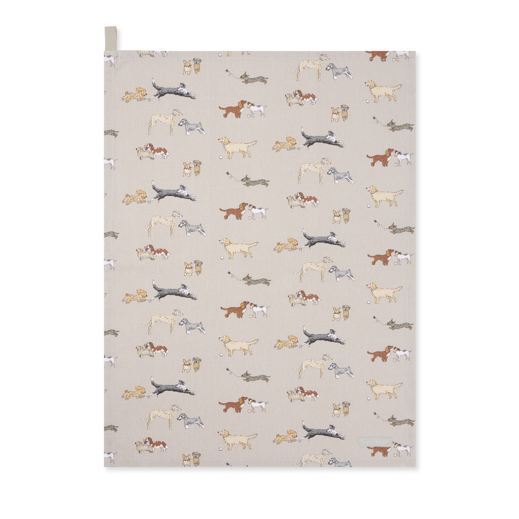 Add a playful touch to your kitchen or utility room with this 100% cotton tea towel, featuring illustrations of a few of our favourite doggies. Spot charming breeds including border collies, cockapoos, corgis, border terriers, spaniels, king Charles spaniels, schnauzers, golden retrievers, lurchers, wire-haired dachshunds, jack russells and Norfolk terriers. The natural stone colourway pairs well with many kitchen interiors.